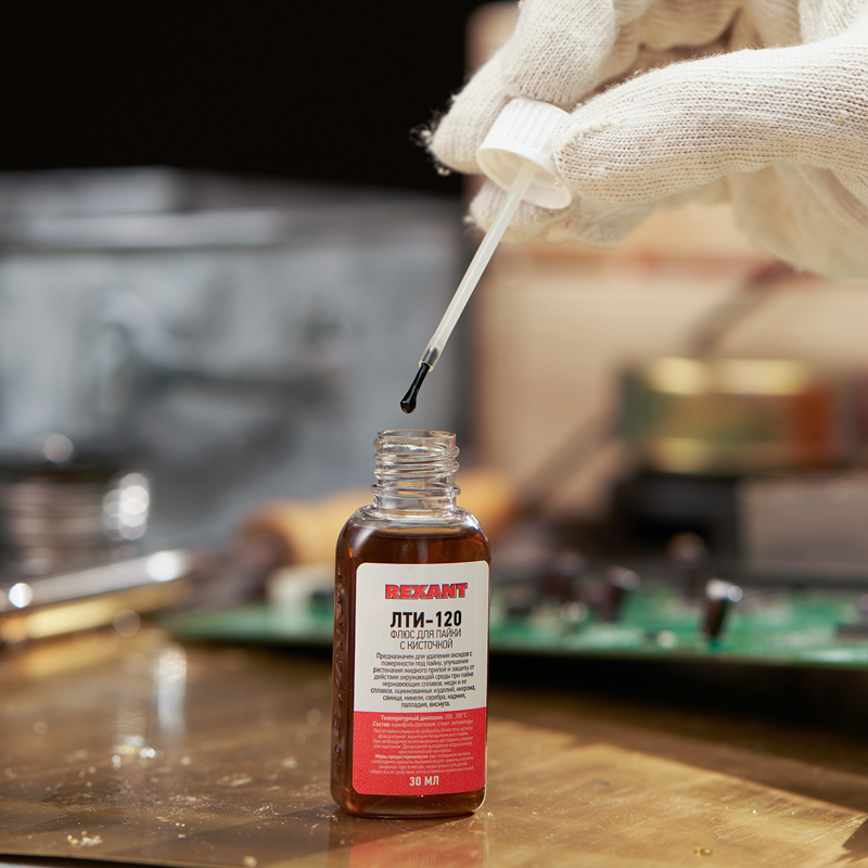 Флюс для пайки, ЛТИ-120, 30мл, с кисточкой, флакон REXANT