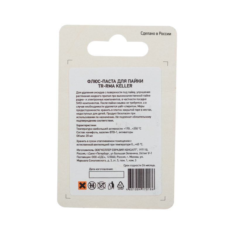Флюс для пайки, паста TR-RMA KELLER, 20мл, банка, блистер REXANT