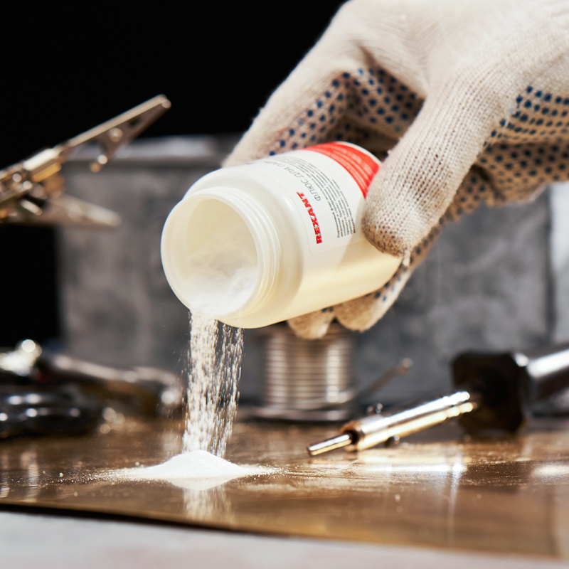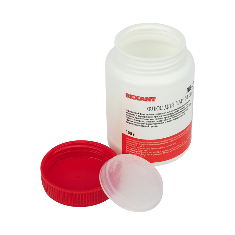 Температура пайки: +700...+900 °C. Вариант фасовки – банка с крышкой, вес нетто 100 г. Применяемый припой: среднеплавкие припои.