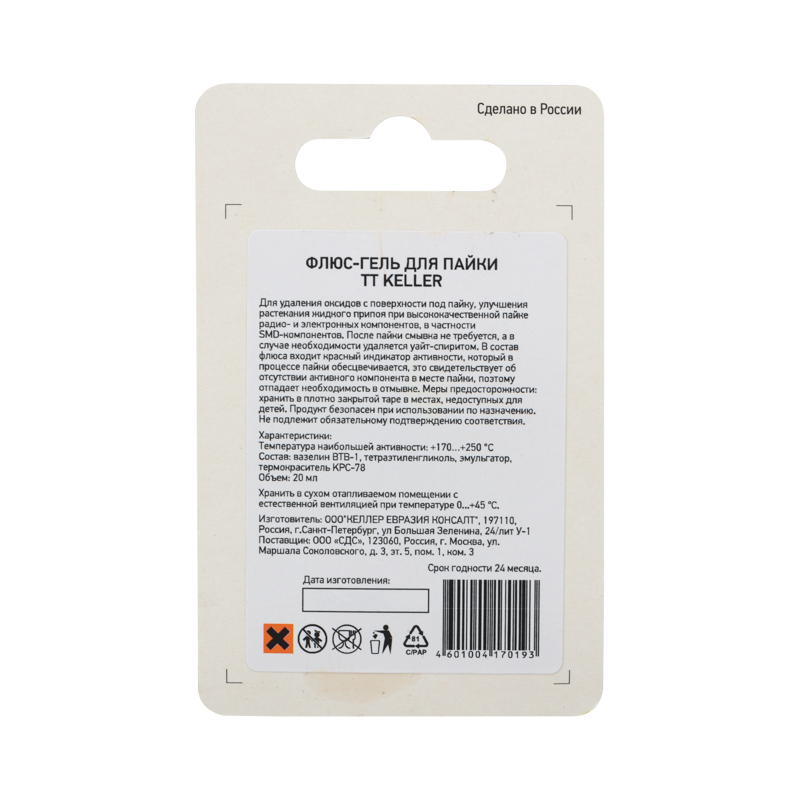 Флюс-гель для пайки, TT KELLER индикаторный, 20мл, банка, блистер REXANT
