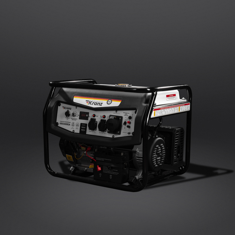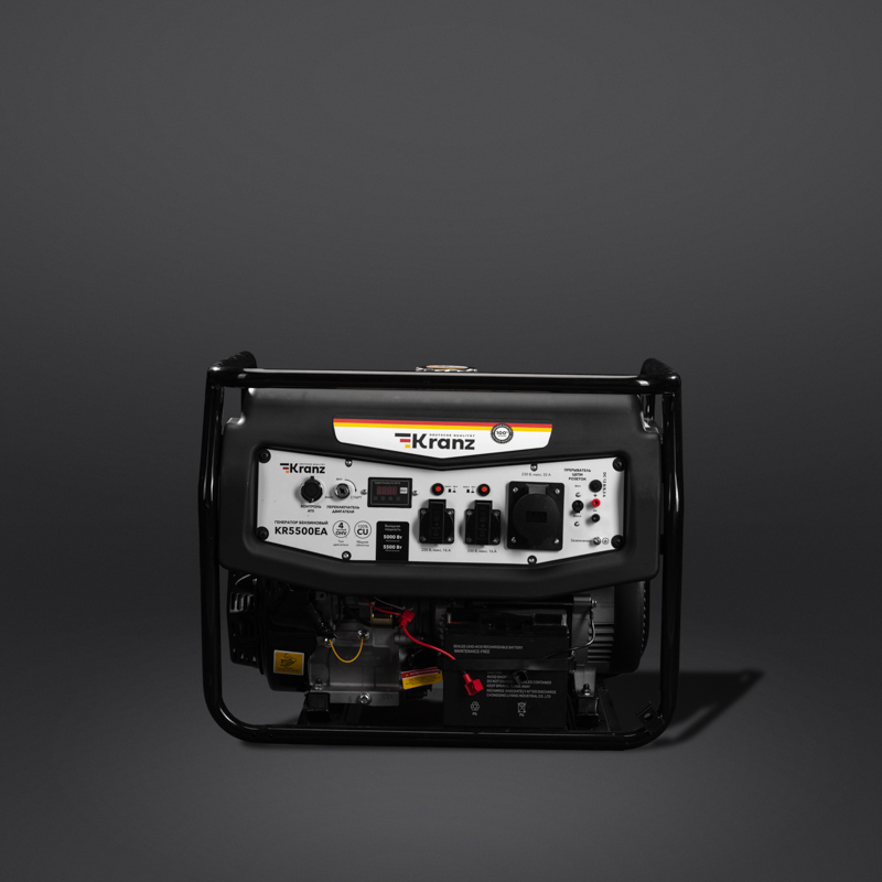 Бензиновый генератор KR5500EA предназначен для подключения мощных электроинструментов и бытовых приборов. Работает от АИ-92. Оснащен автоматической системой переключения питания основной сети электроснабжения на генератор для резервного питания электросети (для подключения требуется блок автоматики).