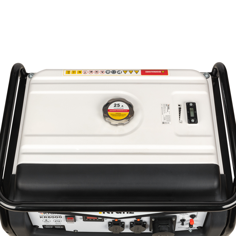 Бензиновый генератор KR8000 предназначен для обеспечения электричеством большого загородного дома, магазина или строительной площадки. Устройство может запитать сразу несколько потребителей, например: обогреватель или кондиционер, насос и электроинструменты. Работает от АИ-92.