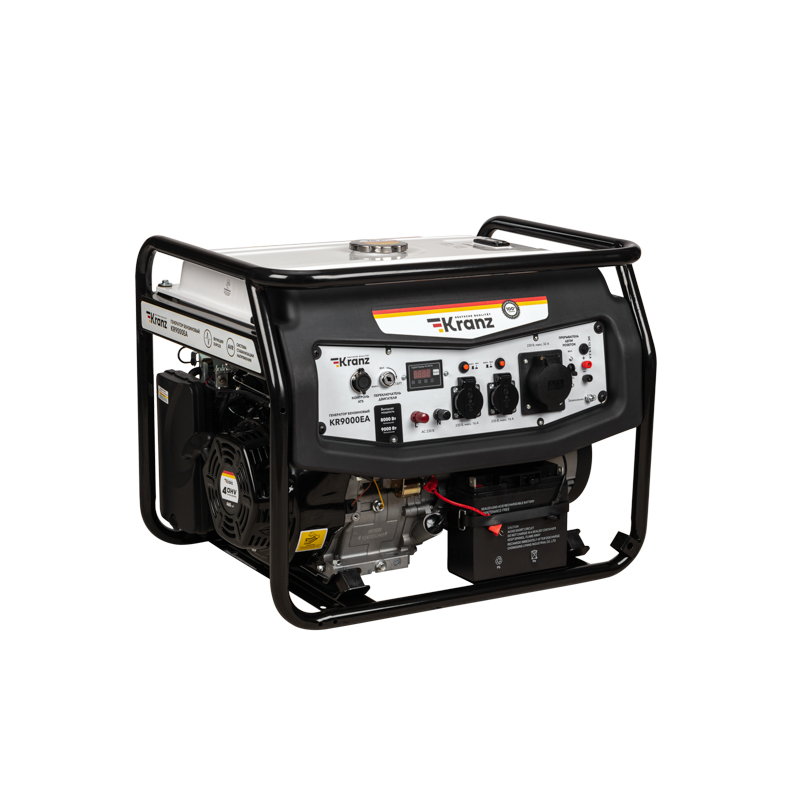 Бензиновый генератор KR9000EA с коннектором автоматики 5-PIN предназначен для обеспечения электричеством большого загородного дома, магазина или строительной площадки. Работает от АИ-92. Оснащен автоматической системой переключения питания основной сети электроснабжения на генератор для резервного питания электросети (для подключения требуется блок автоматики).