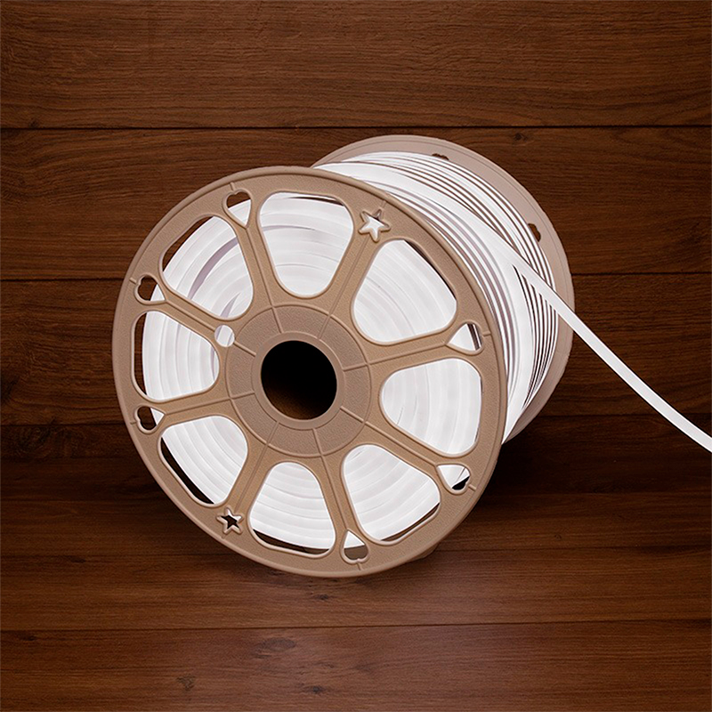 Гибкий неон – это световой шнур световой шнур, изготовленный из матовой белой ПВХ-трубки, внутри которой расположены токопроводящие жилы и светодиодная лента.