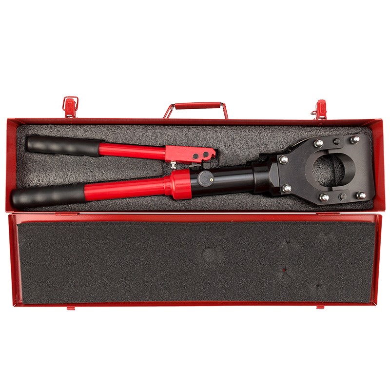 Корпус и рабочие части ножниц изготовлены из высокопрочной инструментальной стали. Инструмент подходит для работы с толстым кабелем: максимальный диаметр телефонного кабеля составляет 50 мм, бронированного медного или алюминиевого - 45 мм. Гидравлический инструмент требует меньше усилий, чем механический. Для надежной работы в холодное время года предусмотрена возможность замены гидравлической жидкости. Однокомпонентные защитные рукоятки выполнены из плотного нескользящего резинового покрытия, которое делает работу с инструментом легкой и приятной. Инструмент поставляется в стальном кейсе, удобном для хранения и транспортировки.