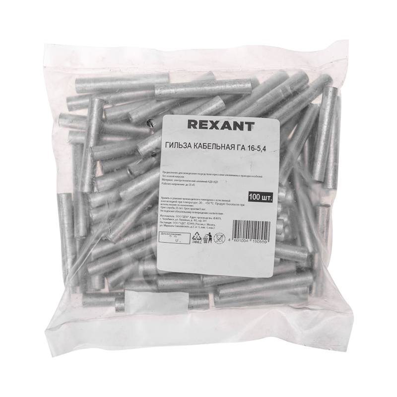 Кабельная гильза ГА 16-5,4 (16мм² - Ø5,4мм) REXANT предназначена для оконцовывания посредством опрессовки проводов и кабелей с медными жилами.