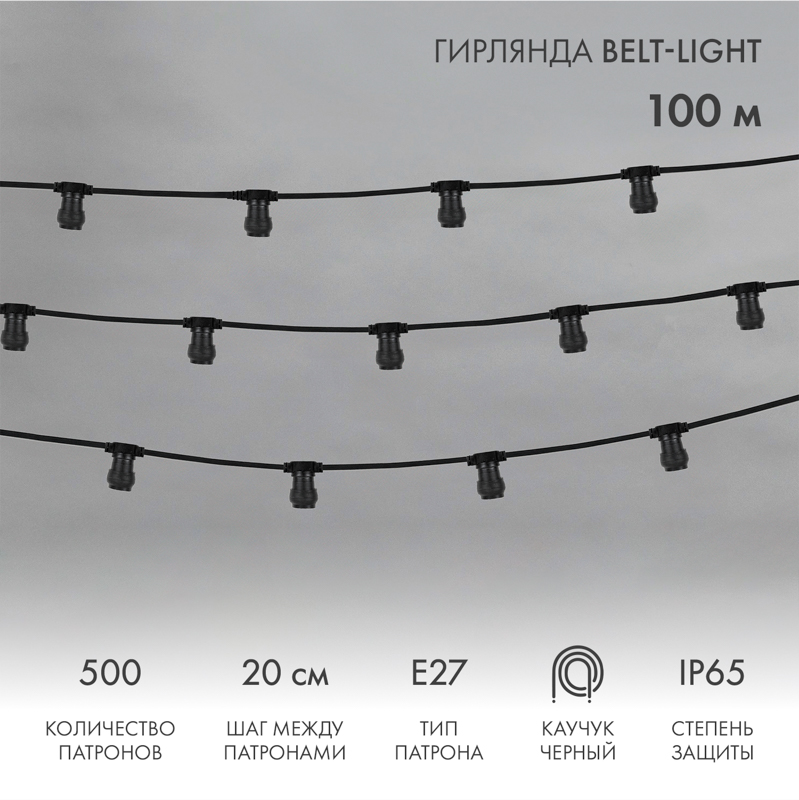 «Белт Лайт» представляет собой токопроводящую многожильную шину в виде ленты. Через определённый интервал на ней последовательно закреплены патроны Е27. Расстояние между патронами фиксировано, и в зависимости от модификации устройства может составлять 10, 15, 20 или 40 сантиметров.