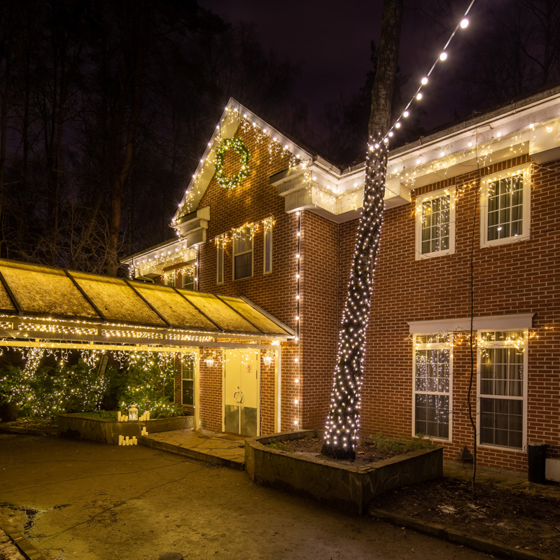 Гирлянда «Белт Лайт» прекрасно подходит для декорирования любых архитектурных сооружений или для создания «перетяжек» между опорами освещения или деревьями.
