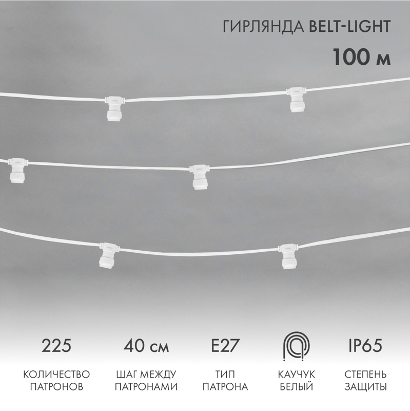 «Белт Лайт» представляет собой токопроводящую многожильную шину в виде ленты. Через определённый интервал на ней последовательно закреплены патроны Е27. Расстояние между патронами фиксировано, и в зависимости от модификации устройства может составлять 10, 15, 20 или 40 сантиметров.