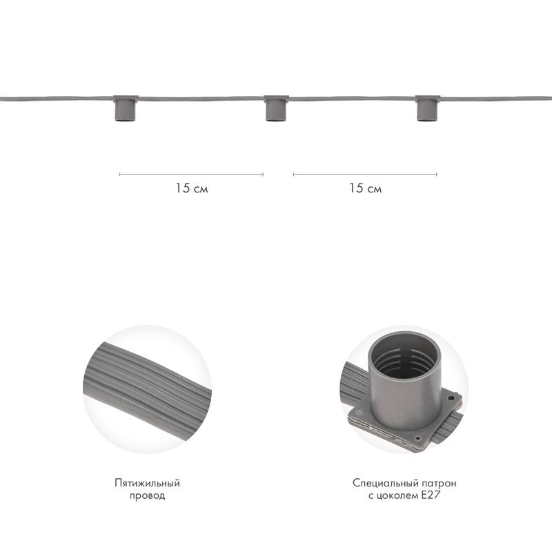 Данная гирлянда имеет 5 жил. 4 канала. Расстояние между патронами 15 см.