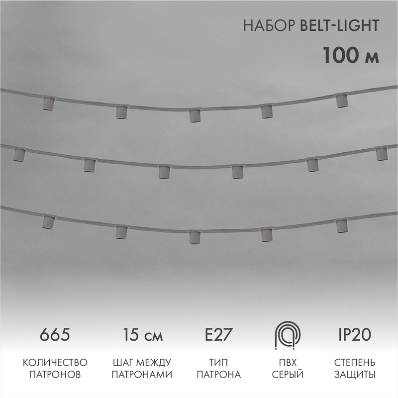 Белт Лайт представляет собой токопроводящую многожильную шину в виде ленты. Через определённый интервал на ней последовательно закреплены патроны Е27. Расстояние между патронами фиксировано, и в зависимости от модификации устройства может составлять 10, 15, 20 или 40 сантиметров.