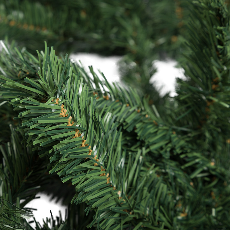 Каждая еловая ветка в гирлянде тщательно выполнена с большим вниманием к деталям, что создает естественный и реалистичный вид хвои. Густота веток и их натуральная форма придают гирлянде объемный и роскошный вид. Диаметр гирлянды составляет 36 см.