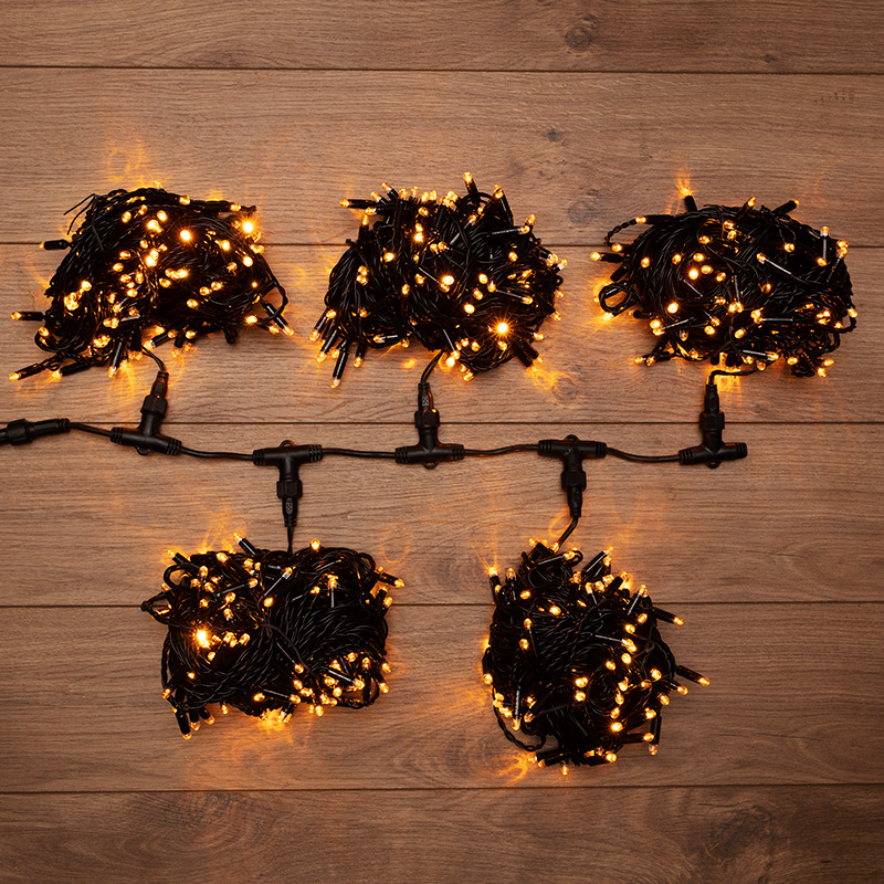 Данная гирлянда состоит из 5 нитей, представлена в желтом цвете свечения светодиодов.