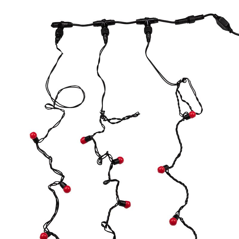 Данная гирлянда состоит из 3 нитей, представлена в красном цвете свечения светодиодов.