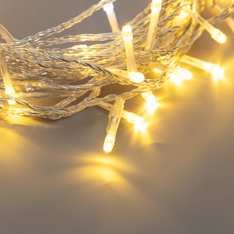 Нить может быть размещена вдоль стен, вокруг окон, на новогодней елке или других предметах. Гибкий провод позволяет легко создать желаемую форму или орнамент, а его прозрачность создает эффект парящих в воздухе огней. Каждый диод на гирлянде светит теплым белым цветом.