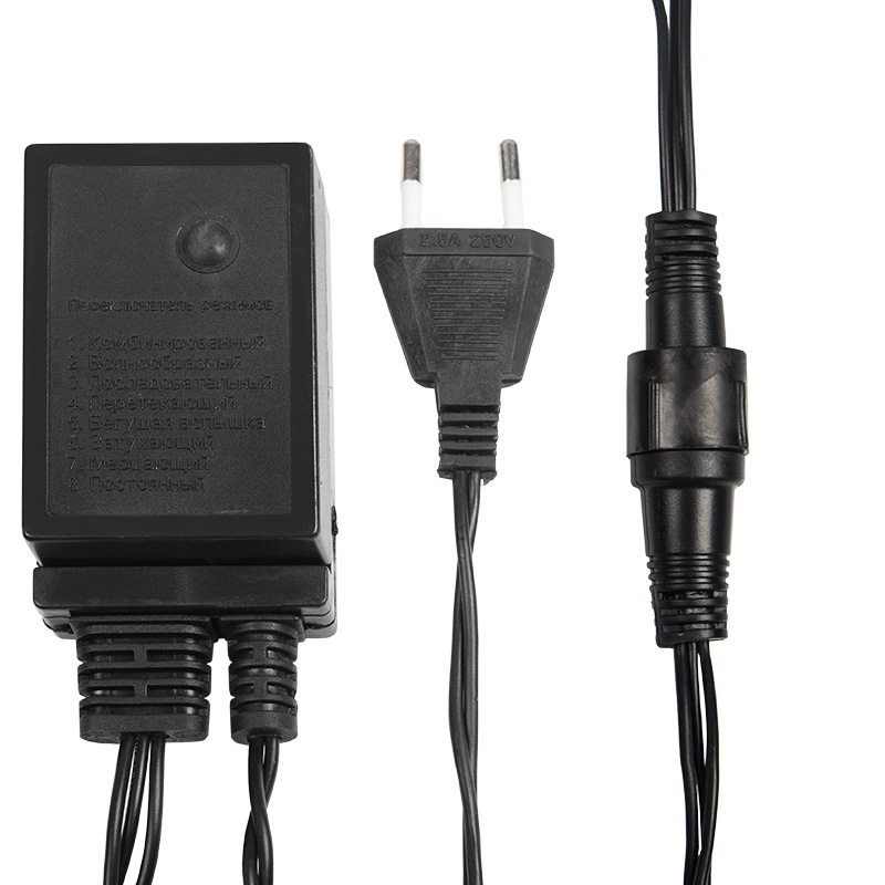 Гирлянда работает в режиме свечения с динамикой, что придает пространству праздничную и волшебную атмосферу. Для работы гирлянды и управления режимами в комплекте поставляется контроллер.