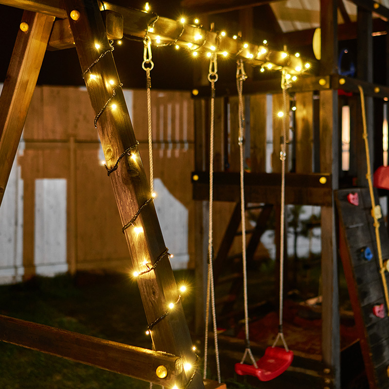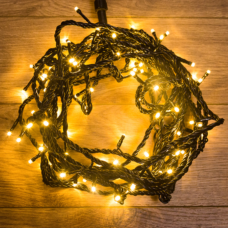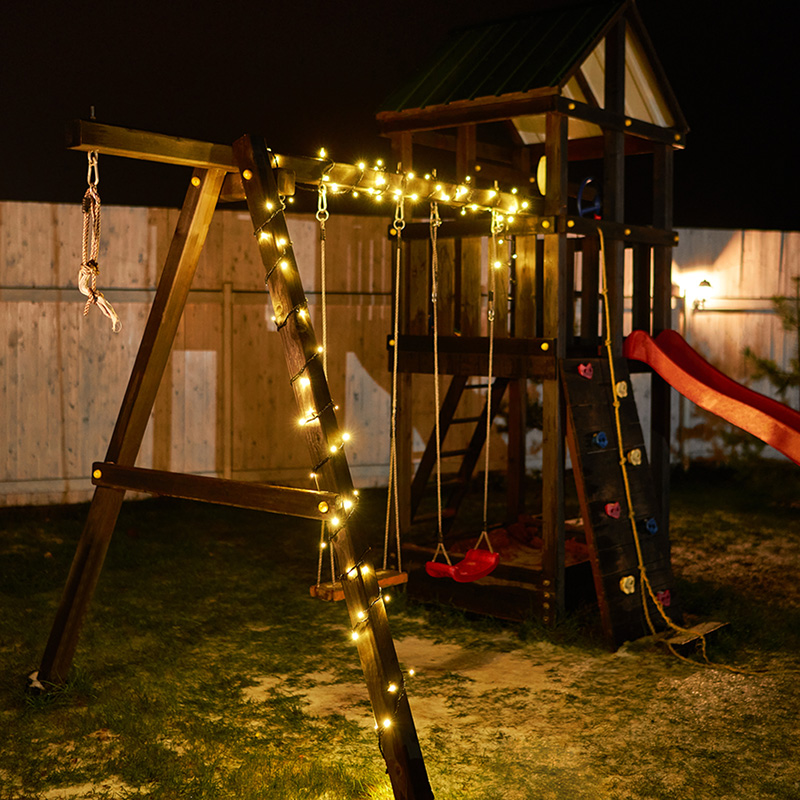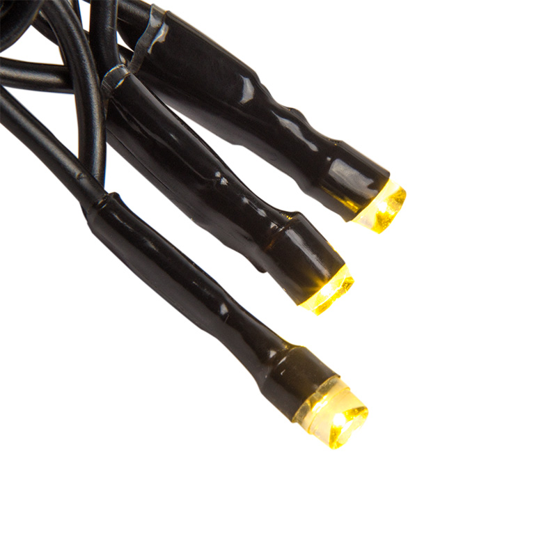 Степень влагозащиты IP65 и ПВХ-провод обеспечивают возможность использования гирлянды на открытом воздухе.