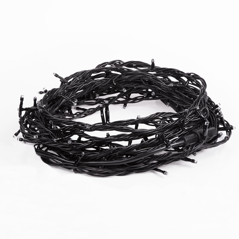 Степень влагозащиты IP65 и ПВХ-провод обеспечивают возможность использования гирлянды на открытом воздухе.