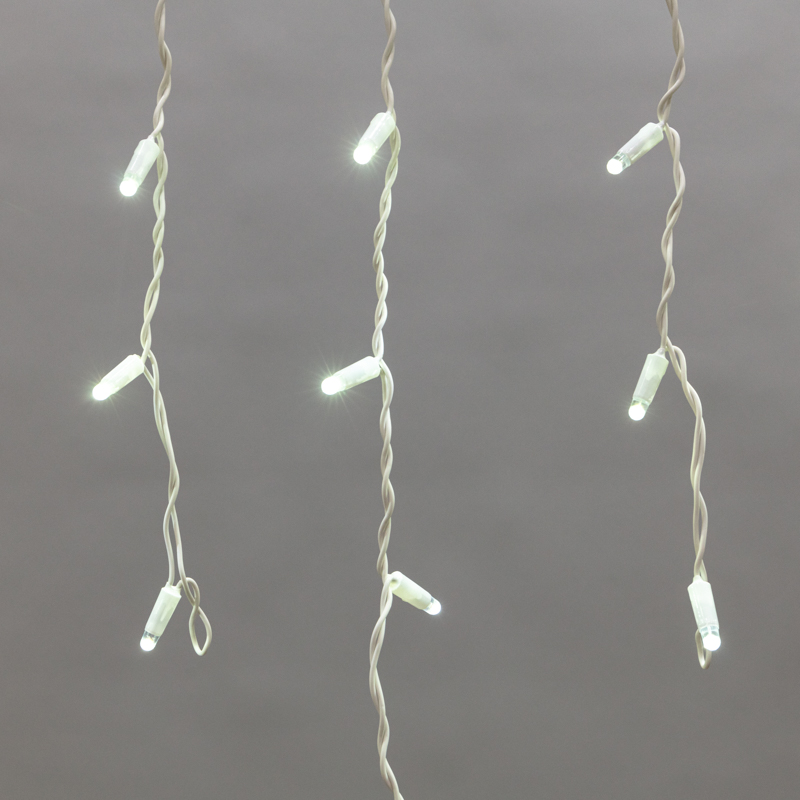 Гирлянда имитирует сосульки и может послужить оригинальным решением при украшении карнизов, арок, фасадов зданий, витрин магазинов, а также стать эффектным элементом декора внутри помещений.