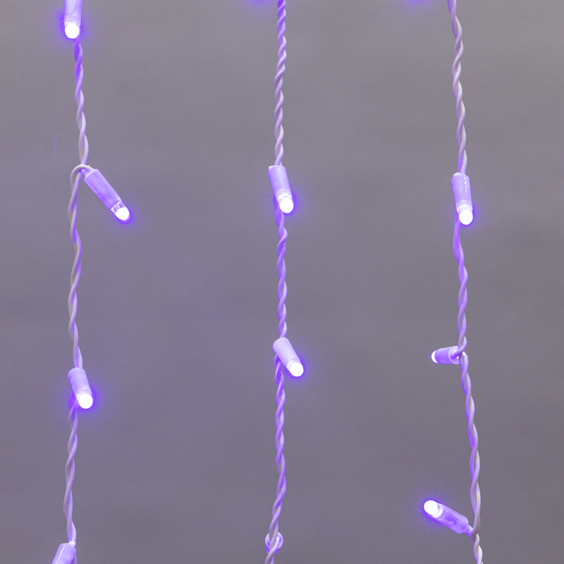 Гирлянда Айсикл (Бахрома) представляет собой гибкий горизонтальный шнур-шину, к которому через определенные промежутки крепятся вертикальные нити разной длины со светодиодами.