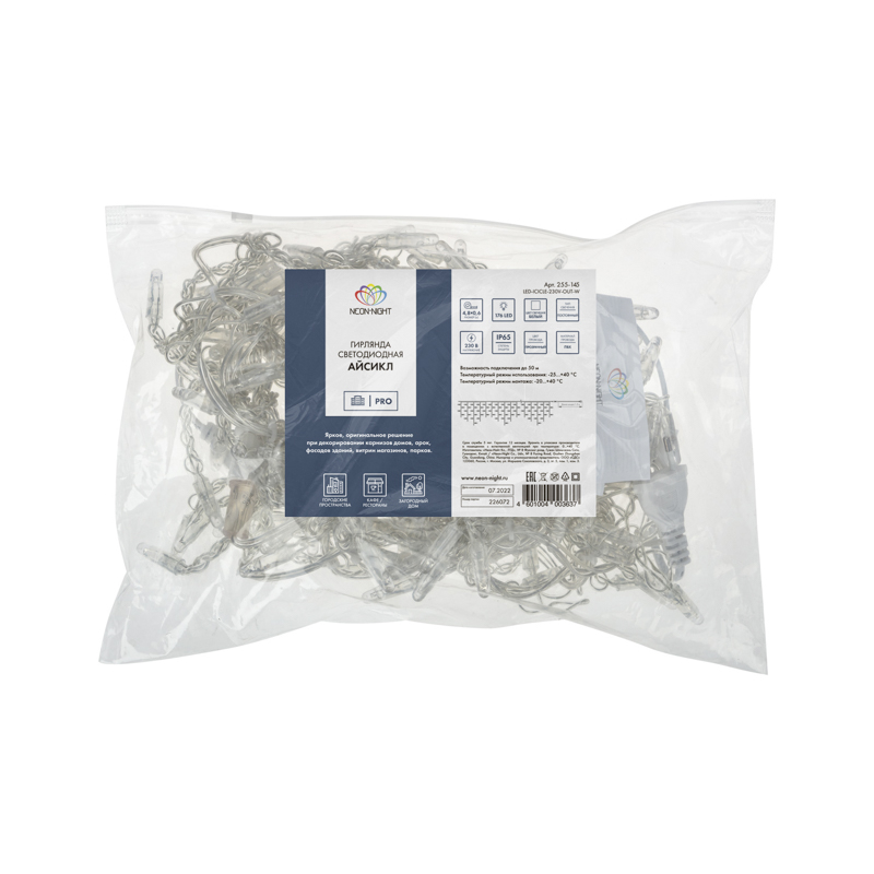 Гирлянда имитирует сосульки и может послужить оригинальным решением при украшении карнизов, арок, фасадов зданий, витрин магазинов, а также стать эффектным элементом декора внутри помещений.