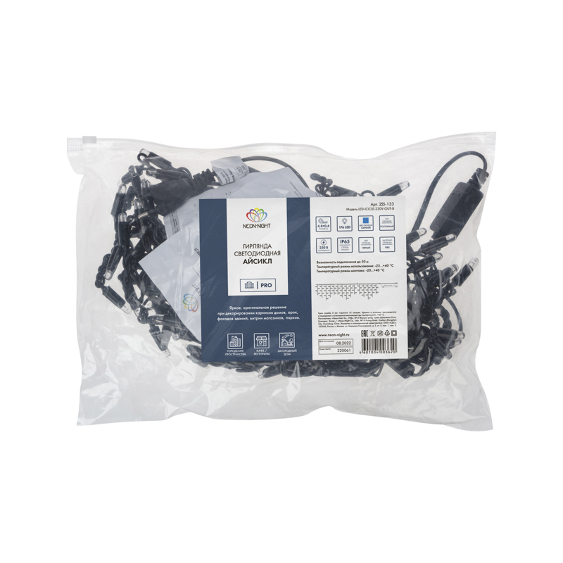 Гирлянда имитирует сосульки и может послужить оригинальным решением при украшении карнизов, арок, фасадов зданий, витрин магазинов, а также стать эффектным элементом декора внутри помещений.