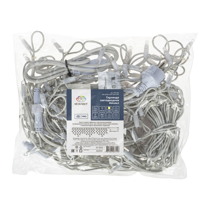 Гирлянда имитирует сосульки и может послужить оригинальным решением при украшении карнизов, арок, фасадов зданий, витрин магазинов, а также стать эффектным элементом декора внутри помещений.