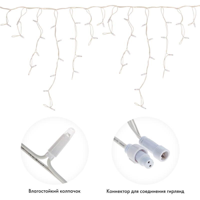 Важной особенностью данного исполнения является каучуковый провод, благодаря которому гирлянда отличается высокой надежностью и может быть использована в условиях российского климата, даже в самых холодных регионах страны!