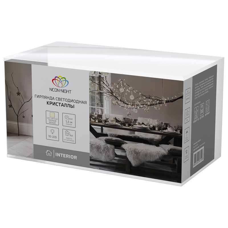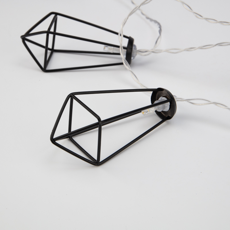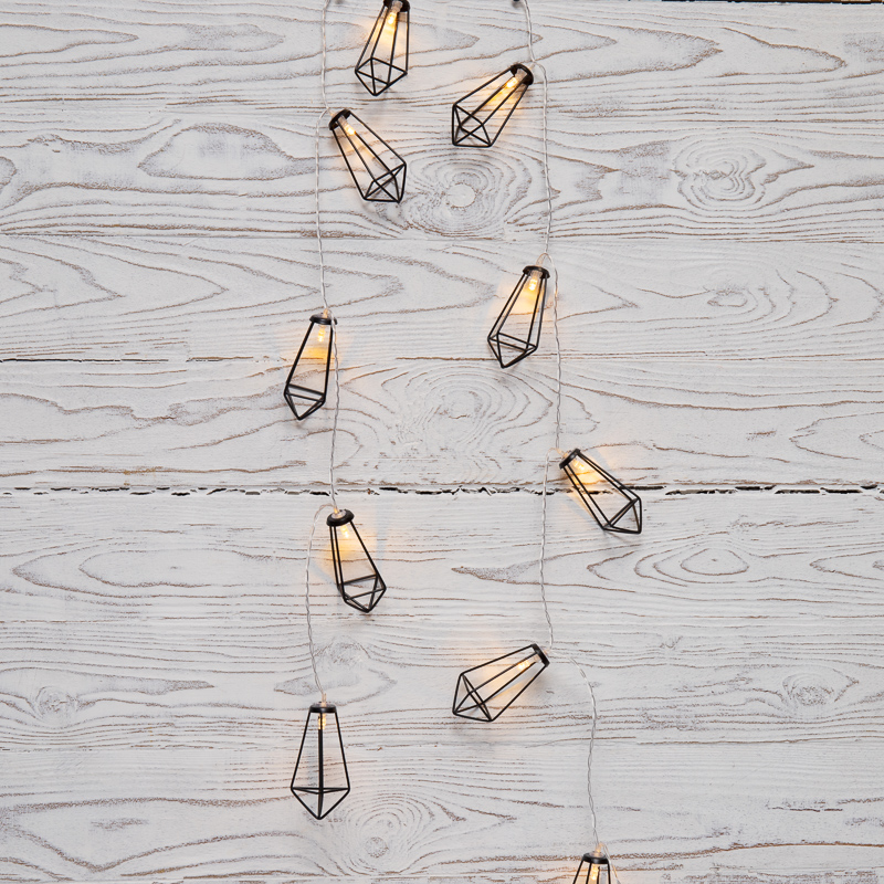 Светодиодная гирлянда «Кристаллы» длиной 1,5 метра — современный, стильный световой декор, который великолепно смотрится в интерьере и неизменно притягивает взгляды окружающих. 10 насадок в виде черных кристаллов подсвечиваются экономичными диодами. Теплый белый свет мягко рассеивается в металлическом корпусе стилизованного кристалла. Гирлянда питается от двух батареек АА и станет оригинальным акцентом, не требующим присутствия электрической розетки. Изделие на батарейках — удобный и, главное, безопасный вариант для украшения.