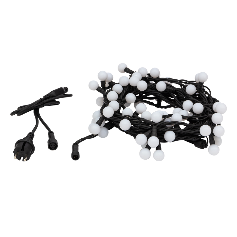 Степень влагозащиты IP67 и утолщенный морозостойкий провод из каучука (резины) обеспечивают возможность использования гирлянды на открытом воздухе.