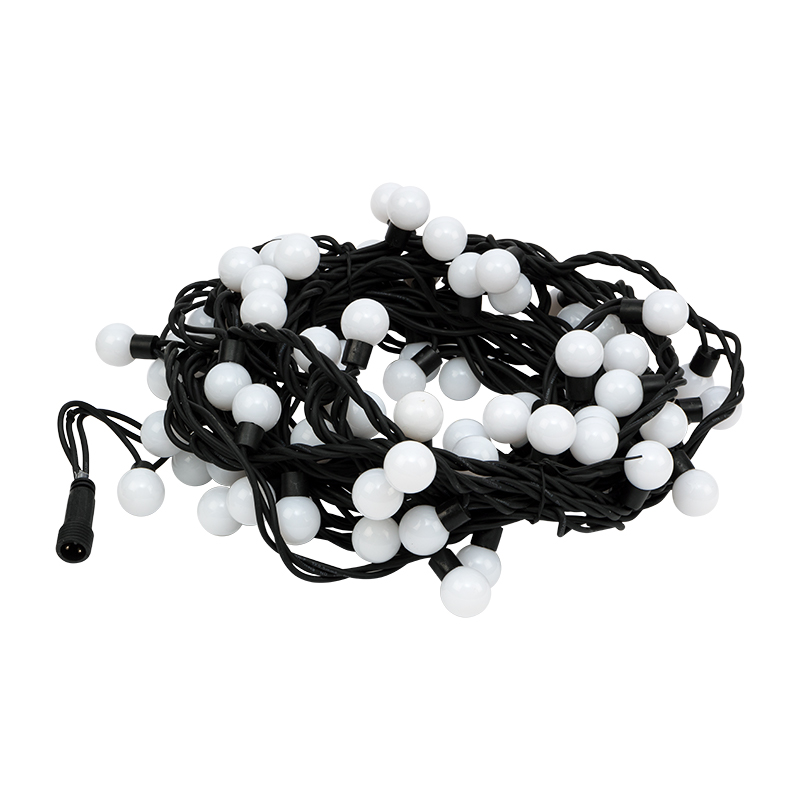 Гирлянда Мультишарики представляет собой провод, на котором располагаются сверхъяркие светодиоды с шагом 12,5 см. На светодиодах находятся насадки в виде шариков диаметром 23 мм.