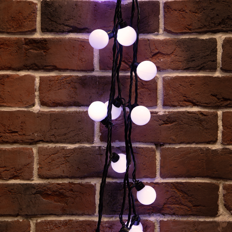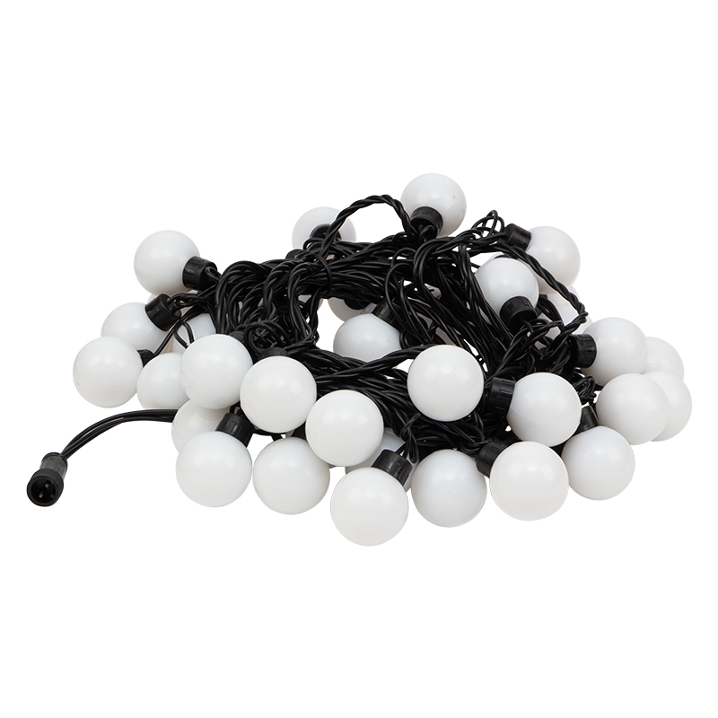 Степень влагозащиты IP65 и ПВХ-провод обеспечивают возможность использования гирлянды на открытом воздухе.