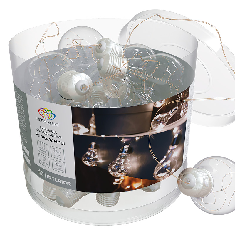 Светодиодная гирлянда «Ретро-лампы» длиной 3 метра не требует подключения к стандартной розетке: питается от 3 батареек типа АА, находящихся в отдельном блоке с кнопкой ON/OFF. Независимая конструкция открывает невероятные возможности в сфере светового декора. На тонком гибком проводе расположены искусно выполненные насадки в виде аутентичных ламп накаливания, которые подсвечиваются белыми лучами диодов. Необычный дизайн, оригинальная концепция помогут добиться винтажного эффекта и атмосферы уюта в декоре помещений. Защита IP20 предполагает использование в отапливаемых помещениях с умеренной влажностью.