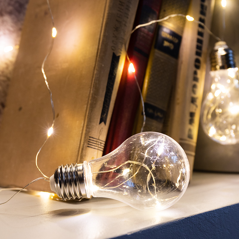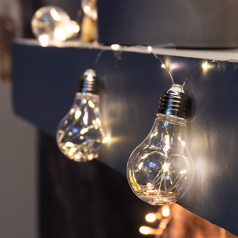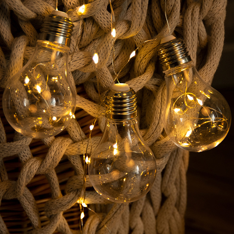Гирлянда «Ретро-лампы» длиной 3 метра — это оригинальный световой декор, который гармонично украсит интерьер, подчеркнет уникальный вкус и креативный подход к оформлению помещений. На тонком серебристом проводе находятся 100 ярких диодов, излучающих теплый белый свет. 10 насадок, выполненных в виде классических лампочек накаливания, расположены на расстоянии 30 см друг от друга и мягко подсвечиваются диодами изнутри. Гирлянда питается от 3 батареек типа АА и имеет кнопку ON/OFF на батарейном блоке. Изделие рассчитано на использование в интерьере, в том числе и в детских комнатах благодаря абсолютной безопасности.