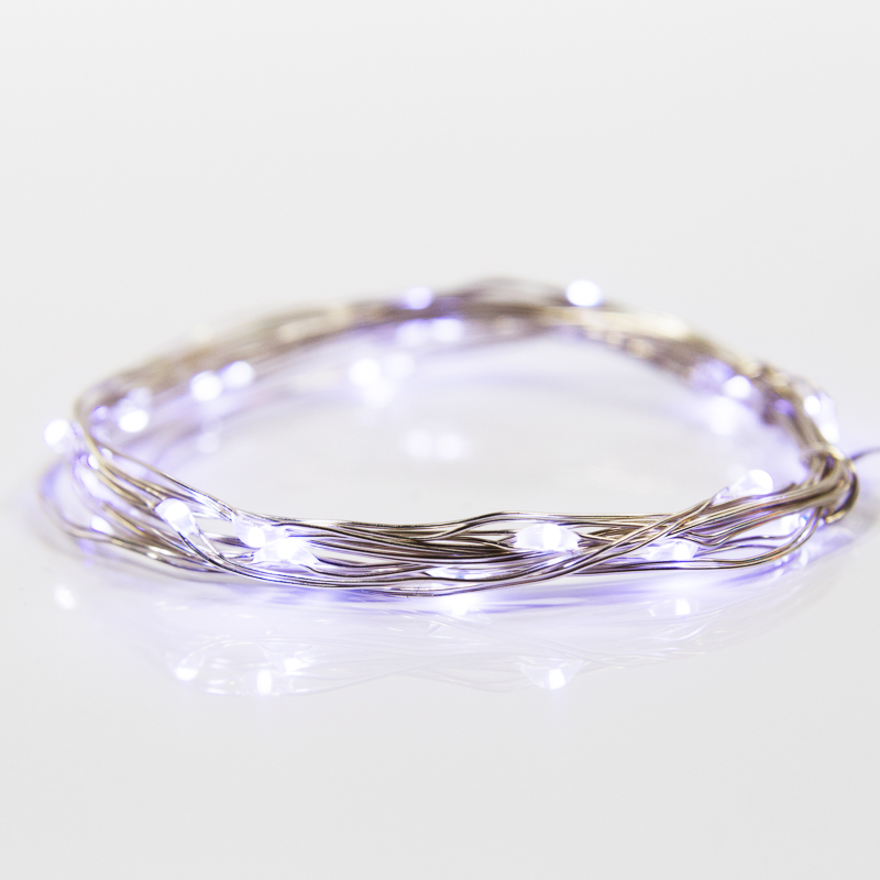 Гирлянда «Роса» длиной 2 метра с 20 безопасными, экономичными светодиодами, которые питаются от двух элементов CR2032. Гирлянда подходит для декорирования любых помещений, включая детские комнаты. Одного комплекта батареек хватает на 48 часов работы. Гирлянда излучает белый свет нейтрального оттенка. Провод с эффектом памяти позволяет создавать сложный декор без дополнительных фиксаторов.