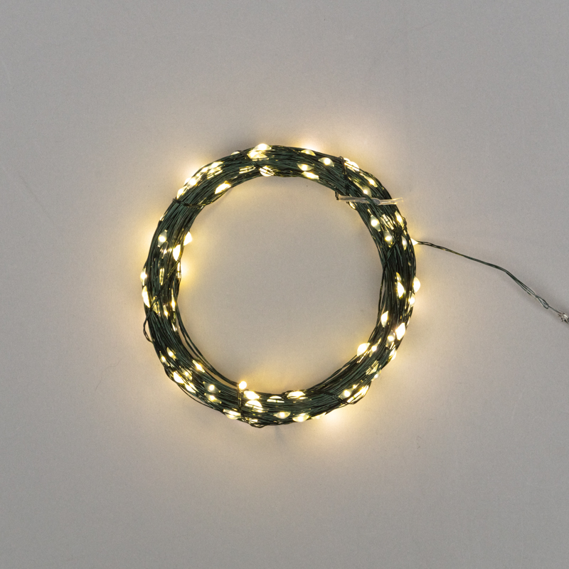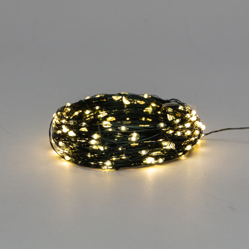 Гирлянда Роса длиной 30 метров представляет собой тонкий провод зеленого цвета, на котором горят и мерцают маленькие светодиоды, напоминающие капли росы.