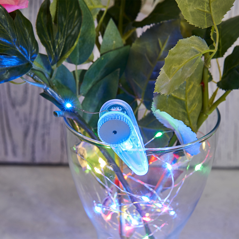 Светодиодная гирлянда «Роса» с прищепкой – прекрасный декоративный элемент, светящийся разноцветными огоньками и создающий атмосферу праздника и уюта.