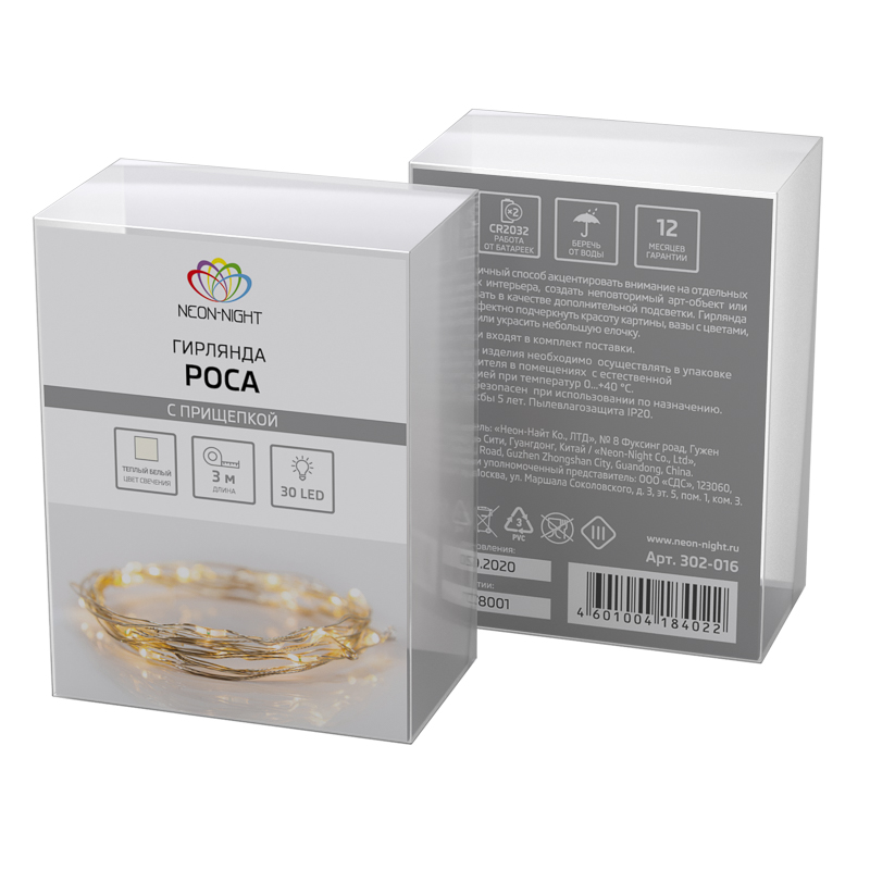 Светодиодная гирлянда «Роса» с прищепкой – прекрасный декоративный элемент, светящийся теплыми белыми огоньками и создающий атмосферу праздника и уюта.