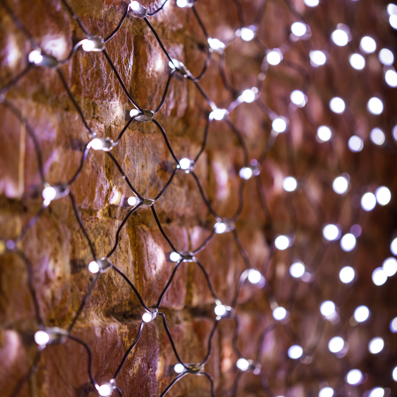 Благодаря такой уникальной форме гирлянда идеально подходит для декорирования кустов, обмотки колонн или столбов, а также для создания растяжек между направляющими в беседках или на верандах. Сеть часто используют для украшения окон или потолков.