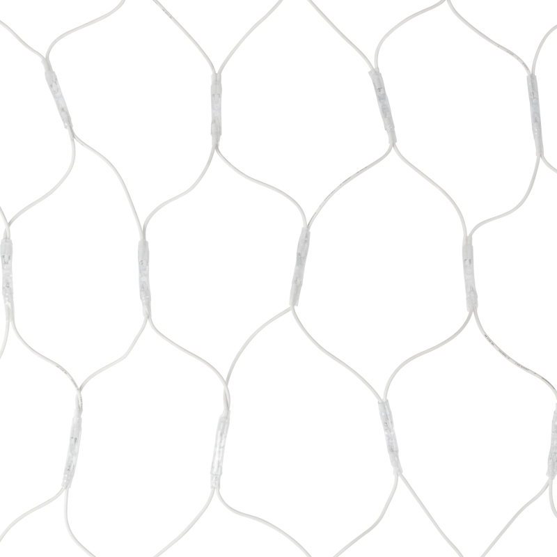 Светодиодная гирлянда Сеть выполнена в форме прямоугольника, разделенного на равные ромбы. В углах этих ромбов располагаются светодиоды теплого белого цвета.