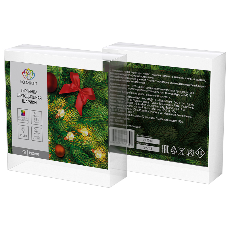Светодиодная гирлянда «Шарики» длиной 1,5 м — это идеальный вариант для оформления небольших переносных предметов: ваз, скульптур, светильников и даже букетов из цветов. Украшение с 10 светодиодами питается от двух батареек АА, поэтому с легкостью может использоваться там, где недоступна обычная розетка. Шарики расположены на проводе с прозрачной оболочкой из ПВХ. Конструкция имеет защиту стандарта IP20 и подходит для размещения внутри помещений с умеренной влажностью.