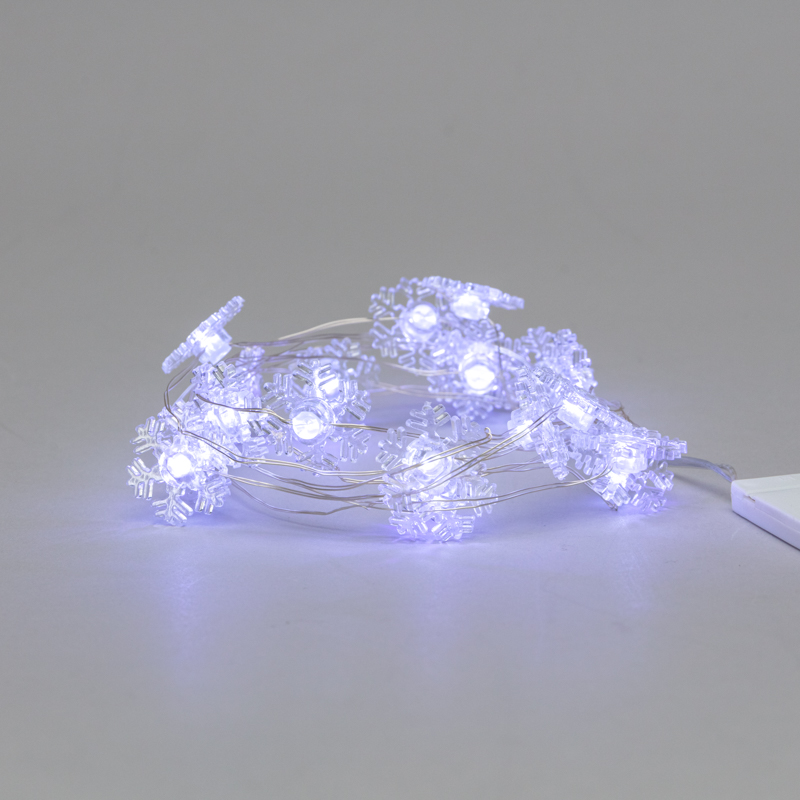 Гирлянда «Снежинки» длиной 2 метра — эффектное зимнее украшение, которое подарит ощущение сказки и приближающихся праздников. 20 ярких белых светодиодов находятся внутри пластиковых насадок, искусно выполненных в виде снежинок. Изделие не требует подключения к электросети: питается от двух источников CR2032, что говорит об абсолютной безопасности в использовании. Одного комплекта батареек хватает на 48 часов непрерывного свечения. . Серебристый кабель обладает способностью сохранять форму при изгибе — гирлянда идеально подходит для декора сложных конструкций.
