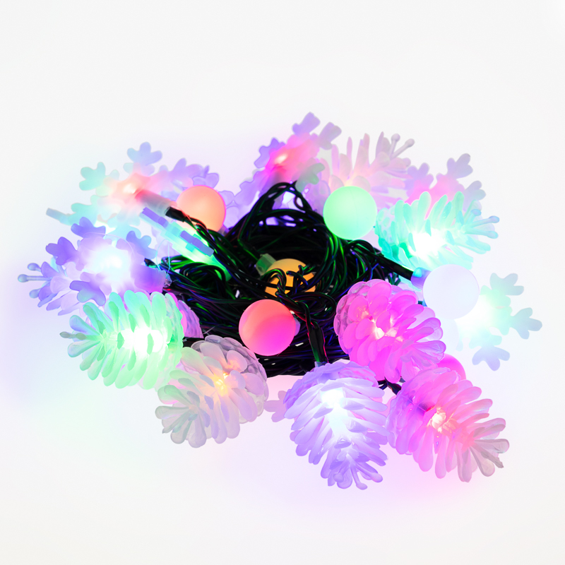 Универсальная светодиодная гирлянда длиной 4,4 метра — это оригинальное решение, меняющее стандартное представление о праздничном украшении. 30 светодиодов, расположенных на проводе с оболочкой из зеленого ПВХ, комплектуются насадками в виде елочек, снежинок и шариков. Разноцветные диоды, управляемые контроллером с 8 режимами, создадут веселое настроение и разнообразят любой интерьер. Гирлянда питается от электросети с напряжением до 230 Вольт.