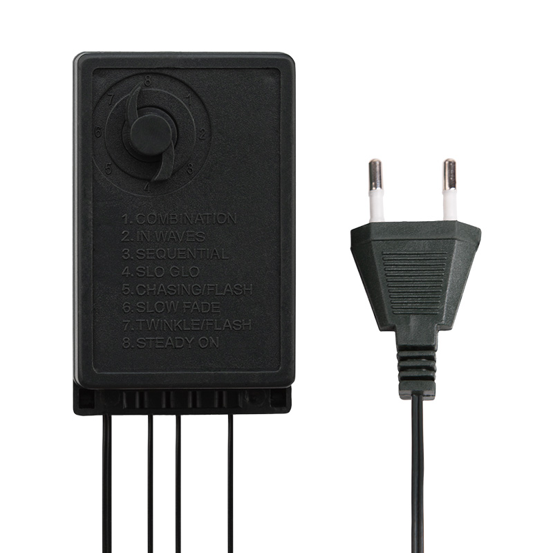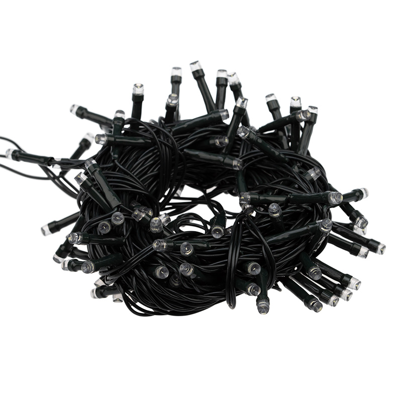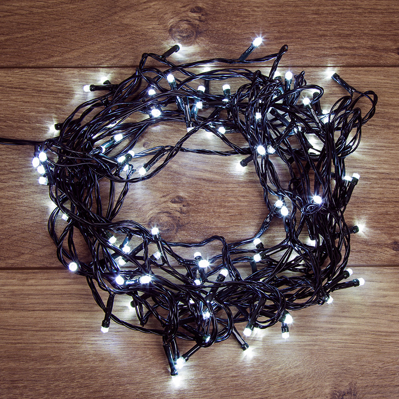 Универсальная светодиодная гирлянда выполнена в виде шнура с оболочкой из ПВХ зеленого цвета, с расположенными на нем на равном расстоянии светодиодами. Украшение прекрасно подходит не только для оформления интерьера дома, квартиры, офиса, но и экстерьера — при условии использования навеса. Светодиоды излучают яркий белый свет, рассыпаясь задорными искрами. Контроллер с 8 режимами позволяет менять динамику в соответствии с настроением. Гирлянда имеет степень защиты от влаги и пыли IP44, поэтому ее можно размещать как внутри помещений, так и на террасах под навесом. Питание гирлянды от сети 230 В.