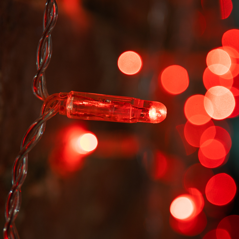 Гирлянда имеет красный цвет свечения. Светодинамические эффекты становятся доступными только при подключении гирлянды к сети через специальный контроллер.