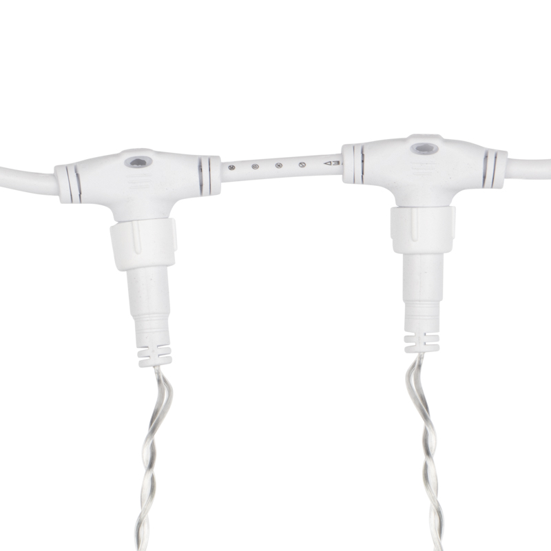 На концах шины располагаются коннекторы, которые предназначены для последовательного соединения нескольких гирлянд в большой занавес для украшения больших площадей или объемных объектов.