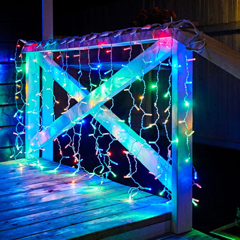 Цвет свечения – мультиколор. Светодинамические эффекты становятся доступными только при подключении гирлянды к сети через специальный контроллер.