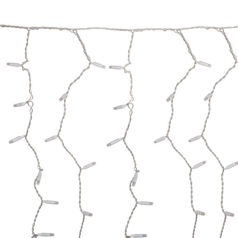 Светодиодная гирлянда Занавес (Дождь) представляет собой гибкий горизонтальный шнур-шину 2 м, к которому через определенные промежутки крепятся 20 вертикальных нитей равной длины со светодиодами.