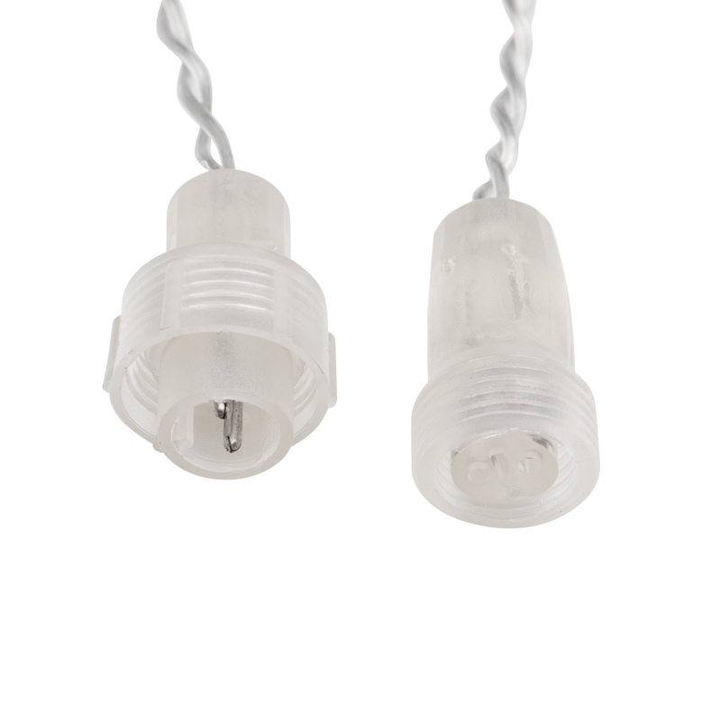 На концах шины располагаются коннекторы, которые предназначены для последовательного соединения нескольких гирлянд в большой занавес для украшения больших площадей или объемных объектов.