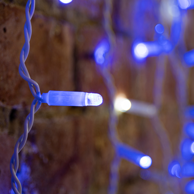 Гирлянда имеет синий цвет свечения и облегченную шину без Т-коннекторов. Обладает эффектом мерцания.
